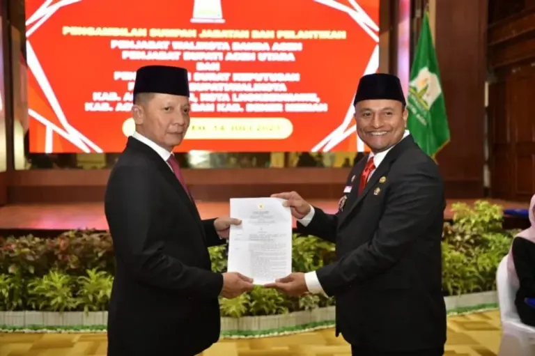 SIGNALNEWS.CO | Banda Aceh – Usai ditetapkan oleh Mendagri untuk menjabat kembali sebagai Wali Kota Lhokseumawe, Penjabat Gubernur Aceh Achmad Marzuki menyerahkan surat keputusan perpanjangan masa jabatan kepada Dr. Drs. Imran, M.Si, MA.Cd.