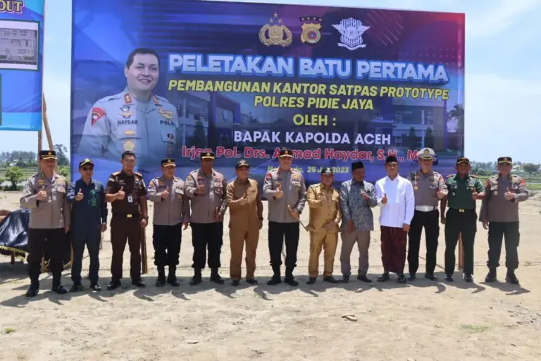 SIGNALNEWS.CO | Meureudu – Kapolda Aceh Irjen Ahmad Haydar meletakkan batu pertama pertanda dimulainya pembangunan gedung Satuan Penyelenggara Administrasi (Satpas) Surat Izin Mengemudi (SIM) di Polres Pidie Jaya, Selasa, 25 Juli 2023.