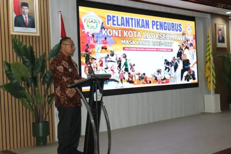 SignalNews.co | Lhokseumawe – Penjabat Wali Kota Lhokseumawe, Dr. Drs. Imran, M.Si, MA.Cd memberikan peringatan tegas kepada Pengurus Komite Olahraga Nasional Indonesia (KONI) Kota Lhokseumawe agar menjalankan tugas dengan sungguh-sungguh dan maksimal. Peringatan tersebut disampaikan saat Pelantikan Pengurus KONI Kota Lhokseumawe Masa Bakti 2023-2027 di Aula Kantor Wali Kota pada Sabtu malam (25/11).