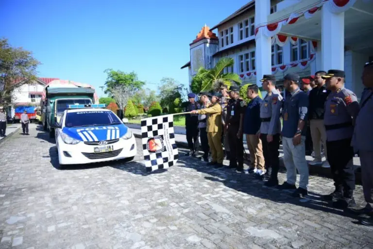 SignalNews.co | Aceh Jaya – Penjabat Bupati Aceh Jaya, Dr. A. Murtala., M.Si., mengikuti apel pelepasan pasukan pengamanan Tempat Pemungutan Suara (TPS) dan distribusi logistik Pemilu 2024 yang dipimpin oleh Kapolres Aceh Jaya, AKBP Andy Sumarta di halaman kantor Bupati Aceh Jaya, Selasa (13/2/2024).