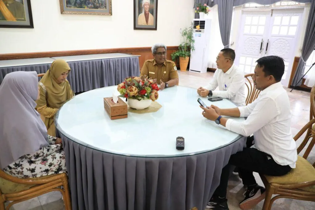 Foto: PFoto: Kepala LPP RRI Lhokseumawe Antoni, SSos berdiskusi bersama Pj Bupati Mahyuzar serta hadir 2 remaja putri yang berhasil menjuarai Pekan Tilawatil Qur’an (PTQ) yang diselenggarakan oleh LPP RRI Lhokseumawe