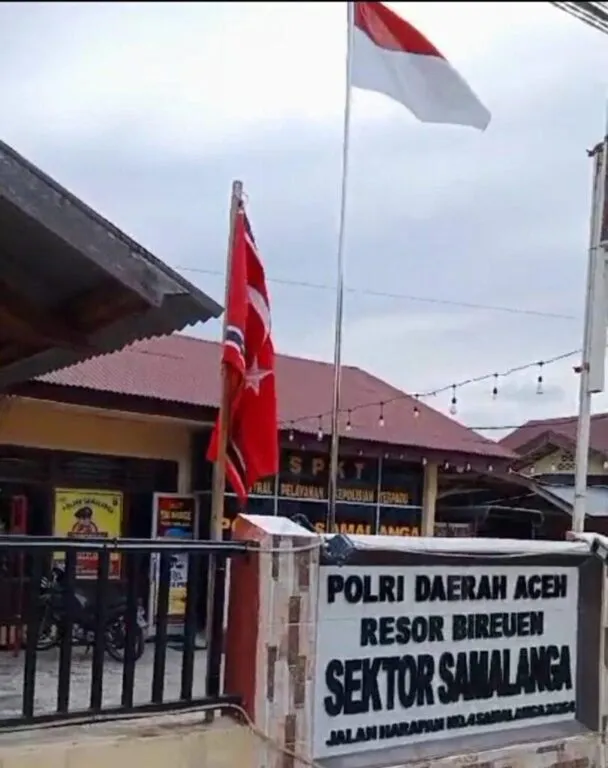 SignalNews.co | Bireuen – Beredarnya Video seorang Pria memasang Bendera Bulan Bintang di Kepolisian Sektor (Polsek) Samalanga kecamatan Bireun, Jumat (29/3/2024). Kepolisian Resor Bireuen mengklarifikasi Bahwa Pemasangan Bendera BB dilatar belakangi ketidak puasa terkait laporan Penganiayaan.