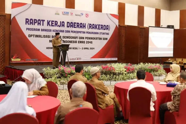 SignalNews.co | Banda Aceh – Penjabat (Pj) Gubernur Aceh diwakili Plh Asisten Pemerintahan, Keistimewaan Aceh dan Kesejahteraan Rakyat Sekretaris Daerah Aceh, Yusrizal, membuka Rapat Kerja Daerah (Rakerda) Program Pembangunan Keluarga, Kependudukan dan Keluarga Berencana (Bangga Kencana) dan Percepatan Penurunan Stunting, di Hotel Hermes Palace, Selasa, (02/04/2024).