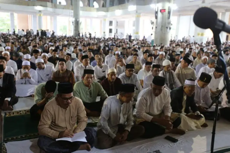 Lhokseumawe – Ribuan umat Islam di Kota Lhokseumawe memadati Masjid Agung Islamic Center Kota Lhokseumawe untuk melaksanakan Salat Idul Fitri 1445 Hijriah, Rabu pagi (10/4/2024).