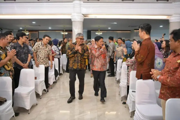 Medan | Penjabat Gubernur Aceh bersama istri yang juga Pj Ketua PKK Aceh Mellani, menghadiri acara syukuran dan halal bi halal dalam rangka peringatan hari jadi Provinsi Sumatera Utara ke-76 yang digelar di Aula Raja Inal Siregar Kantor Gubernur Sumatera Utara, Kamis, (18/4/2024).
