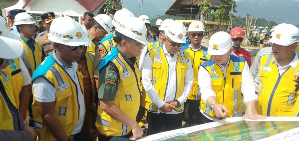 Kehadiran Pj Bupati Mahyuzar bersama rombongan Pj Gubernur Aceh di lokasi pembangunan bendungan Keureutoe disambut langsung oleh Kepala Balai Wilayah Sungai Sumatera I Heru Setiawan, ST, M.Eng, dan pejabat dari perusahaan kontraktor pelaksana Proyek Strategis Nasional (PSN) tersebut.