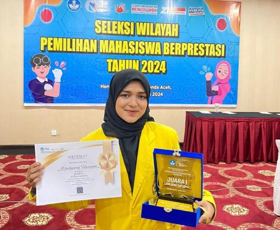Banda Aceh | Mahasiswi Politeknik Negeri Lhokseumawe (PNL) kembali meraih prestasi, kali ini Wasliyatul Hasanah yang merupakan mahasiswi Jurusan Teknik Kimia Prodi Migas berhasil meraih juara pertama jenjang Diploma dari ajang Seleksi Wilayah Mahasiswa Berprestasi Tahun 2024 yang diadakan 2-4 Mei 2024 di Hermes Palace Hotel, Banda Aceh.