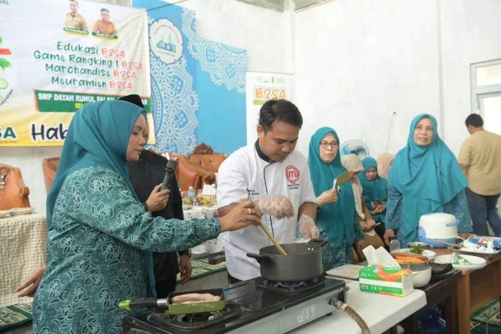 Ajakan tersebut disampaikan Mellani kepada santri Dayah Ruhul Falah Samahani dalam momentum pembagian makanan Pangan Beragam, Bergizi, Seimbang dan Aman atau B2SA dari Badan Pangan Nasional, di aula Dayah Ruhul Falah, Selasa, (7/5/2024.