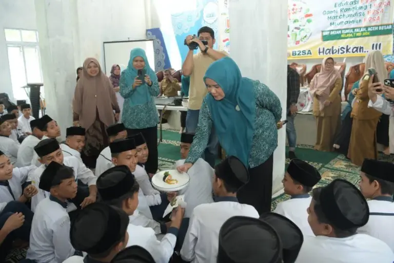 Ajakan tersebut disampaikan Mellani kepada santri Dayah Ruhul Falah Samahani dalam momentum pembagian makanan Pangan Beragam, Bergizi, Seimbang dan Aman atau B2SA dari Badan Pangan Nasional, di aula Dayah Ruhul Falah, Selasa, (7/5/2024.