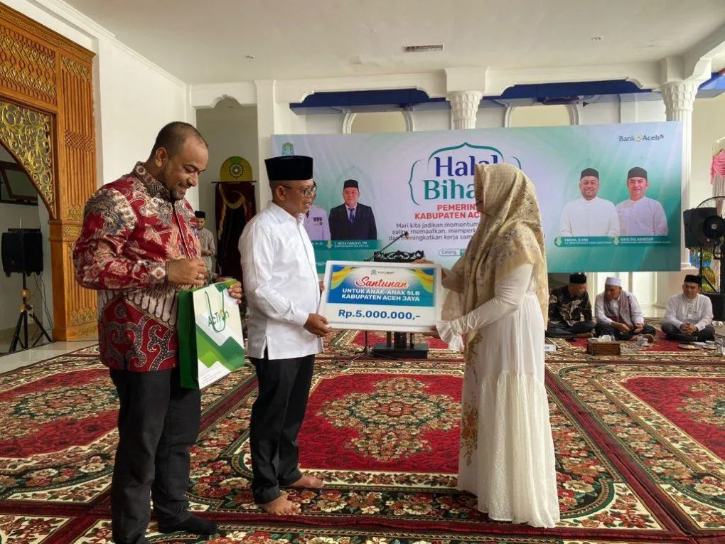 Selain itu, Pj. Bupati Aceh Jaya juga menyerahkan secara simbolis bantuan dari Bank Aceh Syariah untuk anak-anak Sekolah Luar Biasa (SLB) Kabupaten Aceh Jaya. Bantuan ini sebagai bentuk kepedulian pemerintah daerah terhadap anak-anak berkebutuhan khusus agar mereka dapat memperoleh pendidikan yang layak.