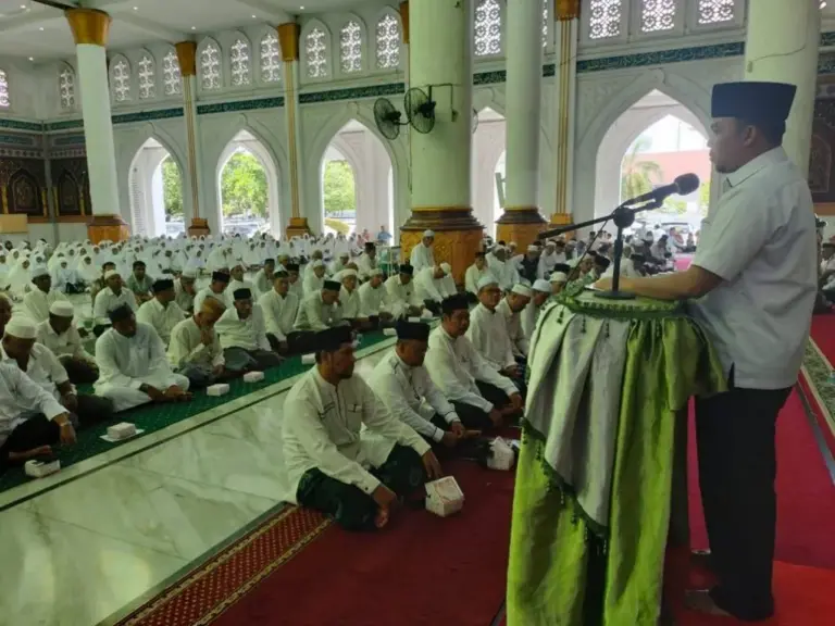 Prosesi peusijuek berlangsung di Masjid Agung Baiturrahim Lhoksukon, Rabu, 22 Mei 2024. Kegiatan itu turut dihadiri oleh Penjabat Bupati Aceh Utara yang diwakili oleh Plh Sekda Aceh Utara Dr Fauzan, SSTP, MPA, pejabat jajaran Forkopimda Aceh Utara, sejumlah Kepala SKPK, Kepala Kantor Kementerian Agama Kabupaten Aceh Utara Drs H Maiyusri, para Kepala Kantor KUA se-Aceh Utara, para Camat dan pejabat terkait lainnya.