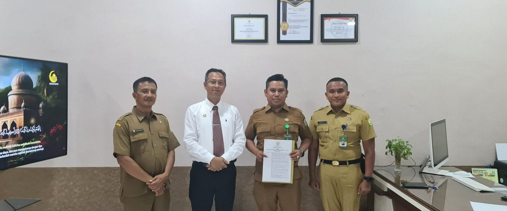 SK Pelaksana Tugas Karo Adpim diserahkan oleh Asisten Administrasi Umum Sekda Aceh Iskandar, didampingi Munawar selaku Kepala Bidang Pembinaan dan Pengembangan Pegawai Badan Kepegawaian Aceh, kepada M Gade, di Kantor Badan Kepegawaian Aceh, Senin (27/5/2024).