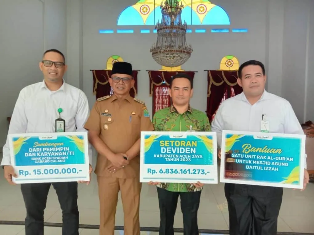 Selain deviden, Pj. Bupati Murtala juga menerima bantuan dari Bank Aceh Syariah Cabang Calang berupa Al-Qur’an untuk Masjid Baitul Izzah dan bantuan khusus dari pimpinan dan karyawan/TI Bank Aceh Syariah Cabang Calang untuk Masjid Al-Muttaqin, Desa Keutapang, Calang, sebesar Rp. 15.000.000.