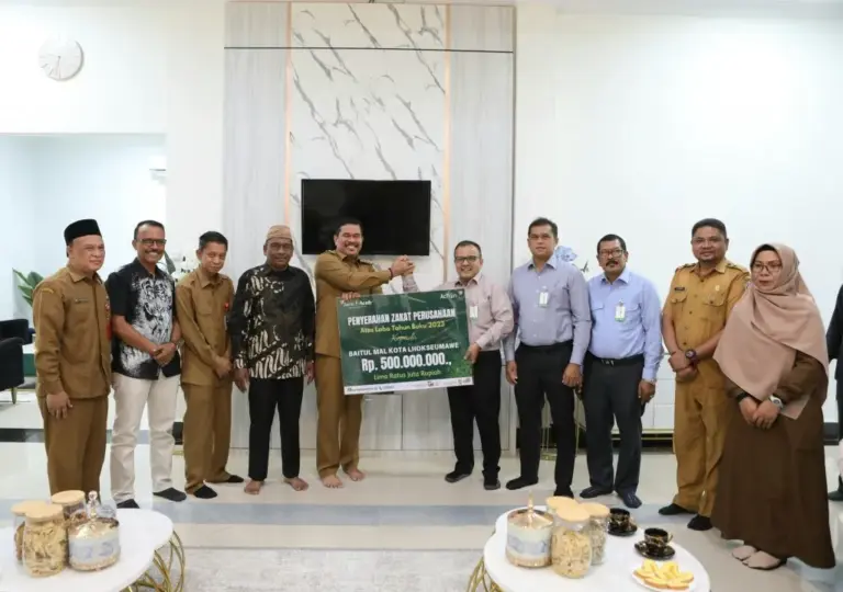 LHOKSEUMAWE | Pemerintah Kota (Pemko) Lhokseumawe menerima penyerahan zakat perusahaan dari PT. Bank Aceh Syariah (BAS) Cabang Lhokseumawe. Penyerahan zakat ini merupakan bagian dari tanggung jawab sosial perusahaan dan komitmen untuk mendukung kemaslahatan umat di Kota Lhokseumawe.