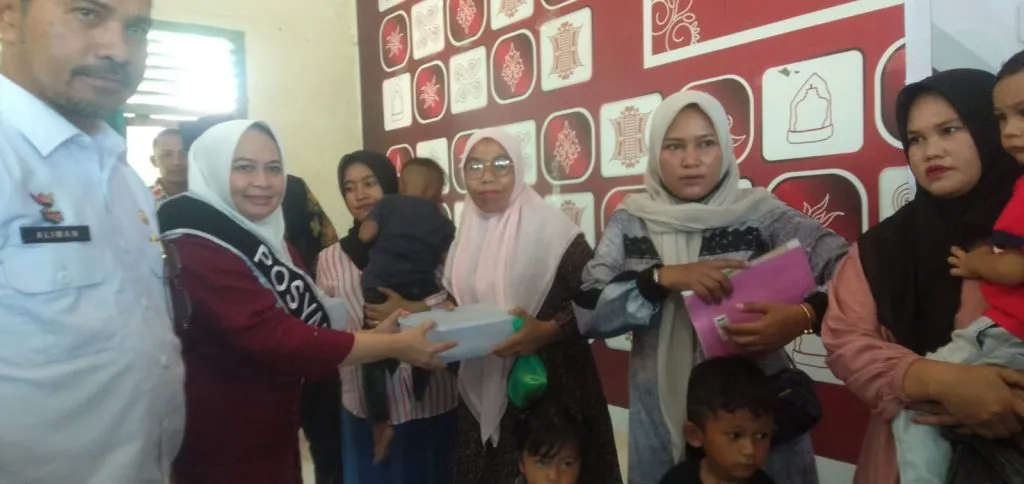 LHOKSUKON | Penjabat Bupati Aceh Utara Dr Mahyuzar, MSi, menyerahkan bantuan 750 paket ikan segar, atau sebanyak 7,5 ton, kepada keluarga yang mempunyai anak stunting dan ibu hamil.