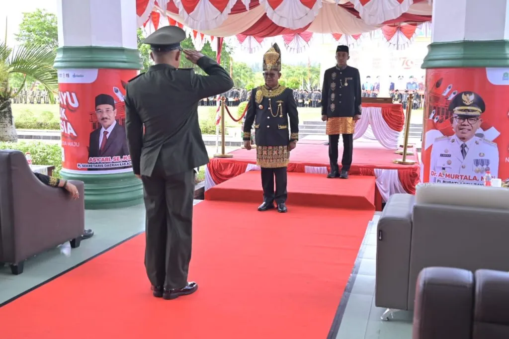 ACEH JAYA | Dalam suasana khidmat, Pj. Bupati Aceh Jaya, Dr. A. Murtala., M.Si., bertindak sebagai inspektur upacara peringatan Hari Ulang Tahun ke-79 Kemerdekaan Republik Indonesia. Upacara berlangsung di halaman Kantor Bupati Aceh Jaya pada Sabtu pagi, 17 Agustus 2024. Upacara HUT RI ke – 79 tersebut menjadi momen penting bagi seluruh masyarakat Aceh Jaya untuk mengenang jasa para pahlawan dan memperkuat rasa nasionalisme.