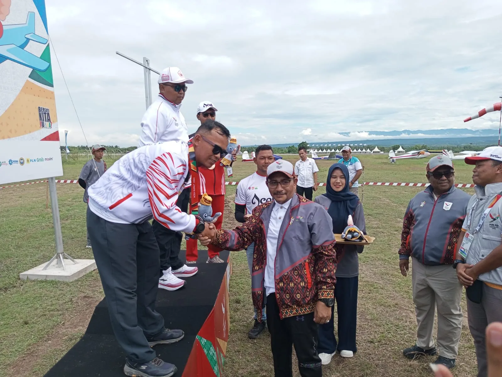 Pada kesempatan itu Haji Uma mengalungkan medali untuk para juara pada mata lomba duration flight dual seater putra. Dalam kesempatan itu Haji Uma turut didampingi oleh Pj Bupati Aceh Utara Dr Mahyuzar, MSi. Pada mata lomba ini atlet DKI Jakarta atas nama Wahyu merebut medali emas, medali perak untuk Abdul (Papua), dan perunggu untuk Hikari (Aceh).