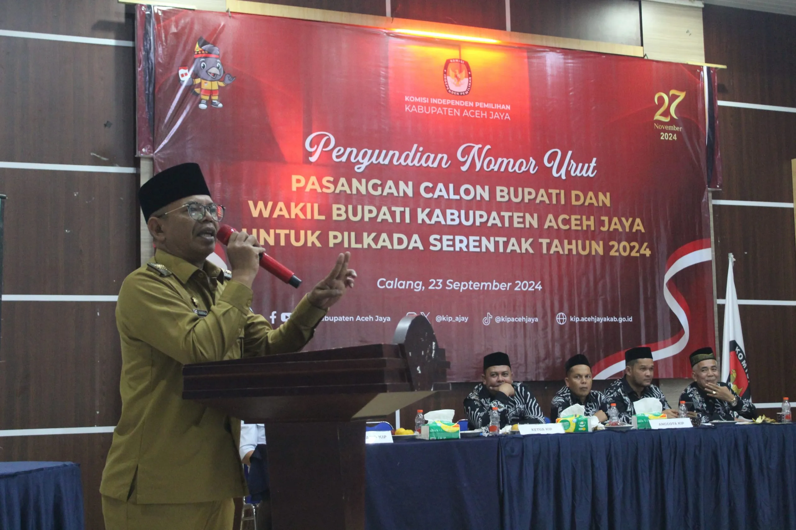 Berikut adalah hasil pengundian nomor urut Calon Bupati dan Wakil Bupati Aceh Jaya 2024: