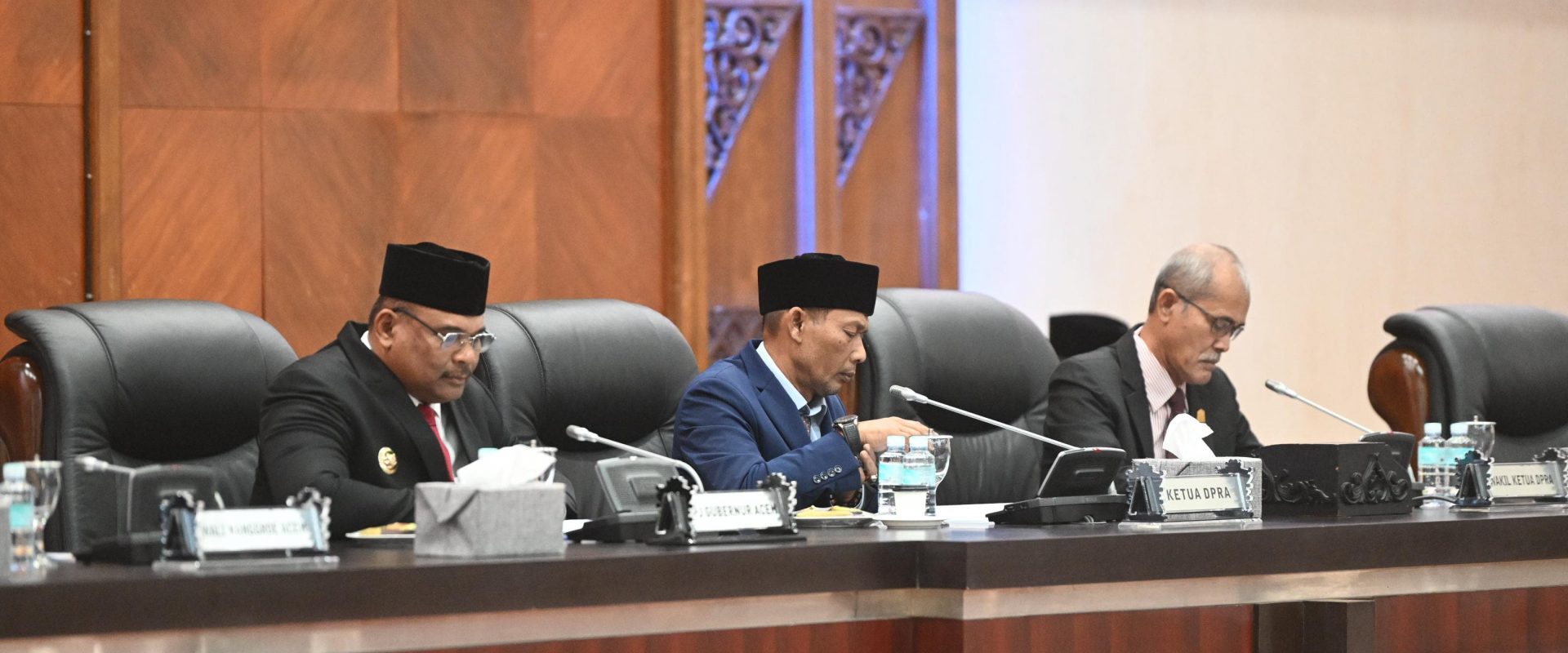 BANDA ACEH | Penjabat Gubernur Aceh, Dr. H. Safrizal ZA, M.Si, menghadiri rapat paripurna DPR Aceh, Selasa 24/09, dengan agenda Penyampaian Pendapat Badan Anggaran (Banggar) DPR Aceh terhadap Rancangan Qanun Anggaran Pendapatan dan Belanja Aceh (APBA) 2025. Rapat yang berlangsung di ruang sidang paripurna DPR Aceh itu, turut dihadiri Sekretaris Aceh dan para kepala SKPA/Kepala Biro di Lingkungan Setda Aceh.