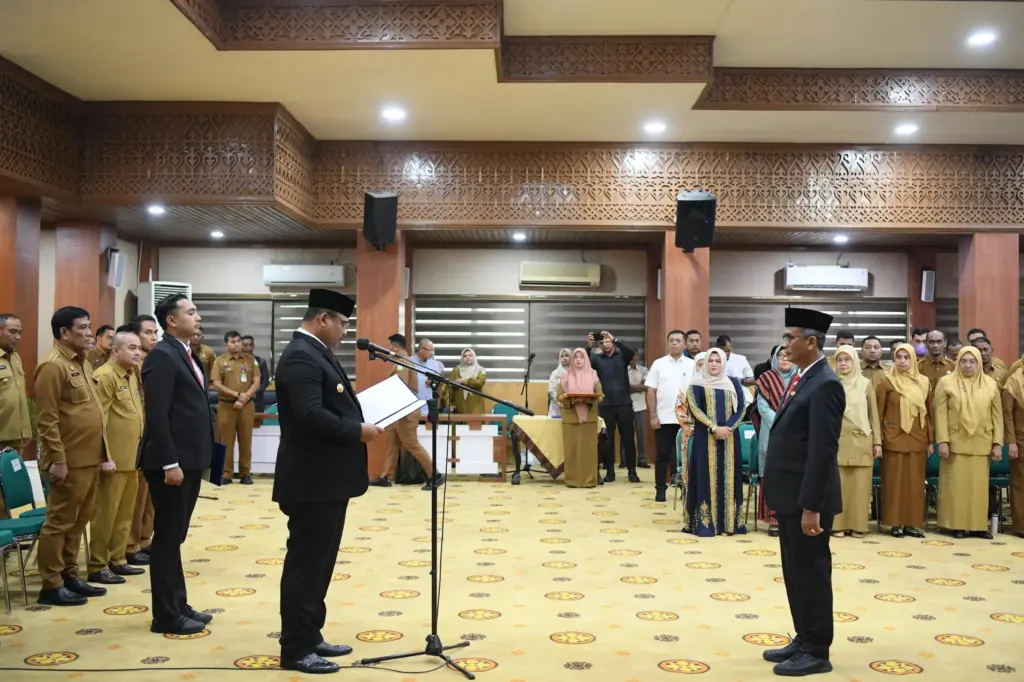 Foto: Penjabat Gubernur Aceh, Dr. H. Safrizal ZA, M.Si, melakukan pengambilan sumpah jabatan dan pelantikan Khudri, S.Ag. MA sebagai Sekretaris Dewan Perwakilan Rakyat Aceh di Gedung Serbaguna Sekda Aceh ,Senin, 14/10/2024,