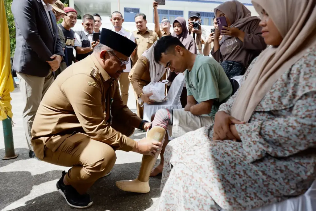 Sebanyak 56 penyandang disabilitas dari 13 kabupaten/kota di Aceh menerima bantuan kaki palsu dari Dinas Sosial Aceh. Dalam acara ini, Pj Gubernur didampingi Kepala Dinas Sosial Aceh dan General Manager PT Angkasa Pura memasangkan kaki palsu secara simbolis kepada tiga penerima, yaitu Amrullah dari Aceh Tenggara, Salamah, dan Misbah dari Abdya.