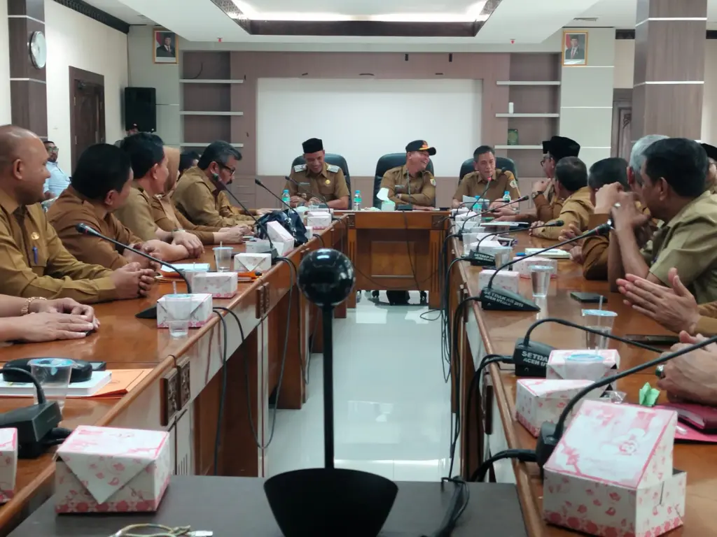 LHOKSUKON | Bupati Aceh Utara H Ismail A Jalil, SE, MM, didampingi oleh Wakil Bupati Tarmizi, S.I.Kom, melakukan rapat perdana dengan seluruh pimpinan Organisasi Perangkat Daerah (OPD), para Asisten Setdakab, Staf Ahli Bupati, para Kabag dan Camat, pada Selasa, 18 Februari 2025.