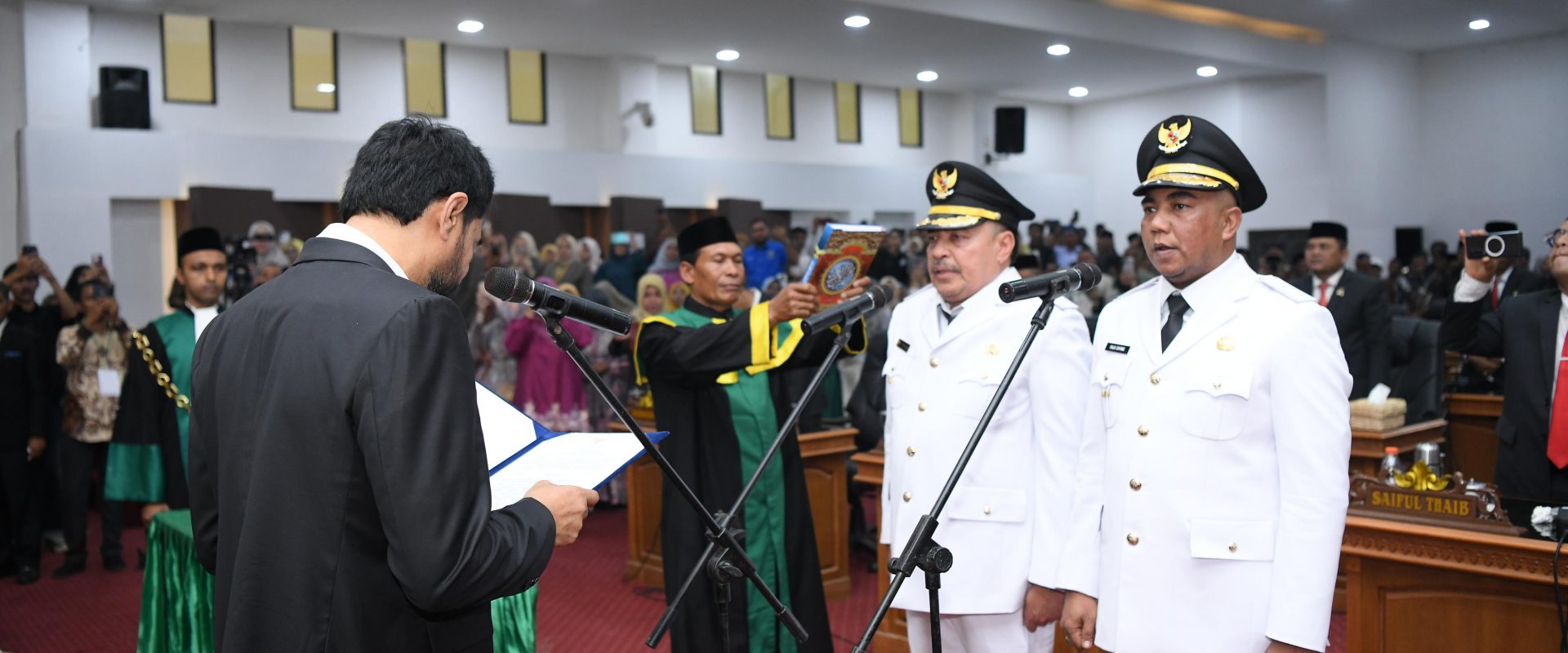 NAGAN RAYA | Gubernur Aceh, Muzakir Manaf, resmi melantik Teuku Raja Keumangan dan Raja Sayang sebagai Bupati dan Wakil Bupati Nagan Raya periode 2025-2030 di Kantor DPRK Nagan Raya, Rabu, 19 Februari 2025. Dalam kesempatan itu, Gubernur Muzakir Manaf mengatakan, Pilkada sudah usai dan sudah saatnya keduanya menjadi pemimpin yang adil dan merata, mengutamakan kesejahteraan seluruh masyarakat Nagan Raya tanpa membedakan kelompok tertentu.