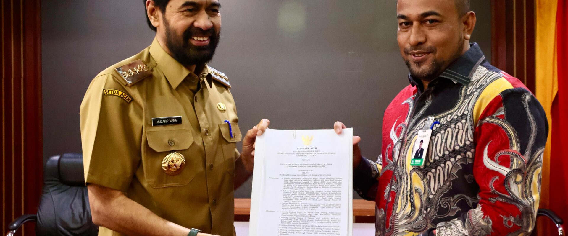 BANDA ACEH | Gubernur Aceh Muzakir Manaf, kembali menunjuk Fadhil Ilyas sebagai Pelaksana Tugas Direktur Utama PT Bank Aceh Syariah, Senin (17/3/2025).