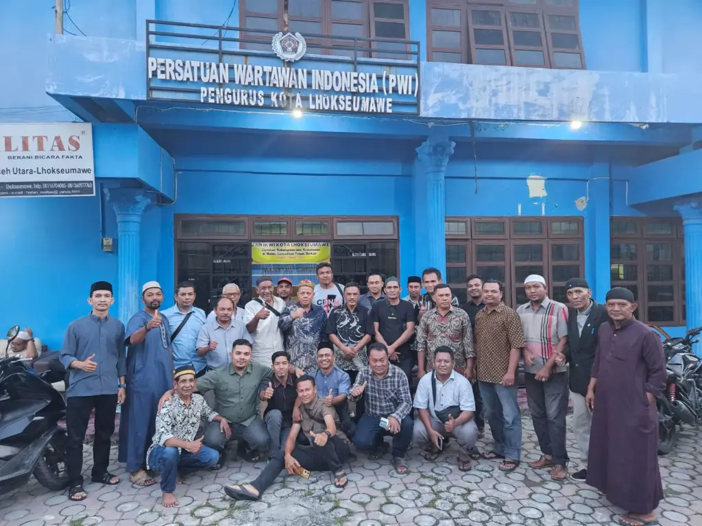 Lhokseumawe | Keluarga Besar Persatuan Wartawan Indonesia (PWI) dan Ikatan Keluarga Wartawan Indonesia (IKWI) Kota Lhokseumawe menggelar buka puasa bersama di Kantor PWI Kota Lhokseumawe, Mon Geudong, pada Kamis (27/3/2025).