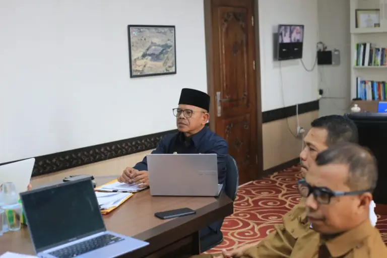 Aceh Utara | Sekretaris Daerah (Sekda) Aceh Utara, Dr. A. Murtala, M.Si, mengikuti Zoom Meeting Sosialisasi Strategi Pemenuhan Sumber Daya Manusia Kesehatan (SDMK) dalam rangka Proyek Strengthening of Primary Health Care in Indonesia (SOPHI), Senin,(14/04/25).