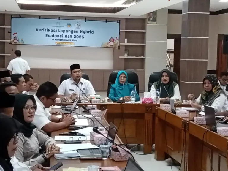 ACEH UTARA | Pemerintah Kabupaten Aceh Utara menunjukkan komitmen kuat dalam perlindungan dan pemenuhan hak anak melalui partisipasi aktif dalam Verifikasi Lapangan Hybrid (VLH) Evaluasi Kabupaten Layak Anak (KLA) Tahun 2025 yang digelar oleh Kementerian Pemberdayaan Perempuan dan Perlindungan Anak Republik Indonesia (Kemen PPPA), Rabu (16/04), bertempat di Oproom Setdakab Aceh Utara.