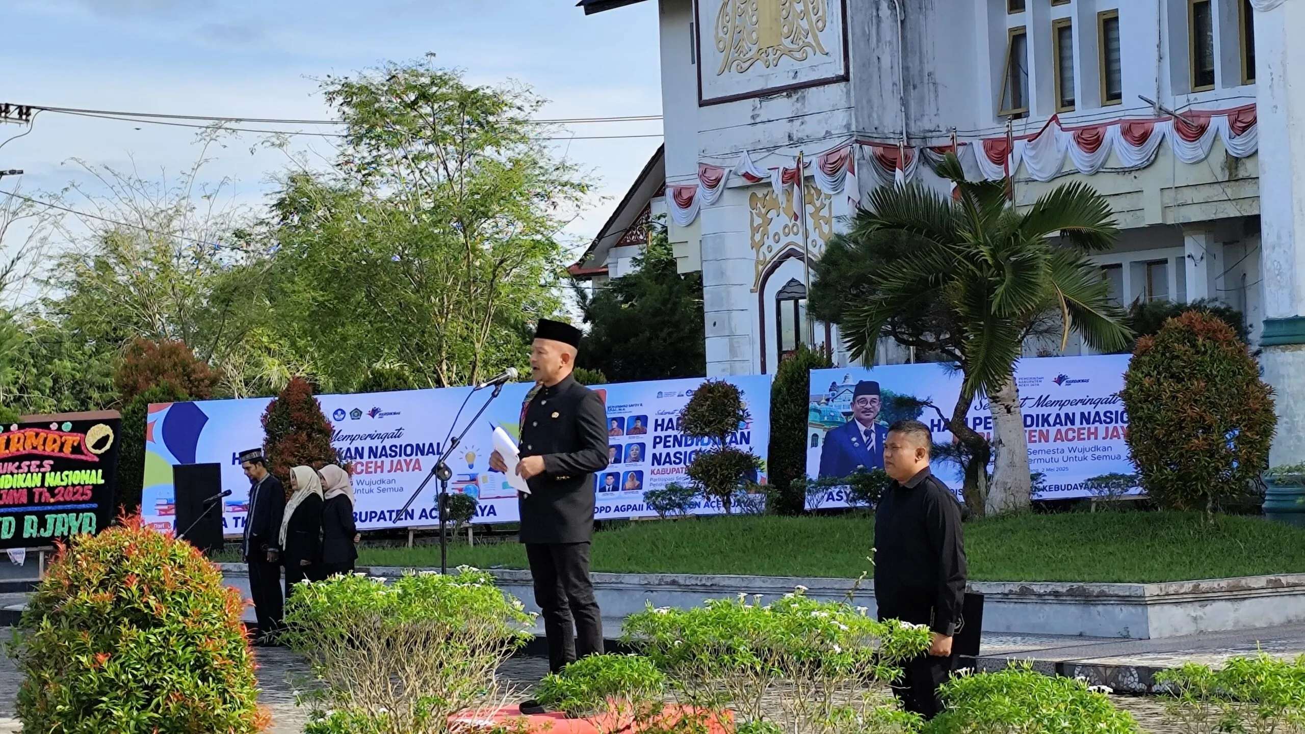 Aceh Jaya | Pemerintah Kabupaten Aceh Jaya menggelar upacara peringatan Hari Pendidikan Nasional (Hardiknas) tahun 2025 di halaman kantor Bupati Aceh Jaya pada Jumat, 2 Mei 2025. Bertindak sebagai inspektur upacara adalah Bupati Aceh Jaya, Safwandi, S.Sos.