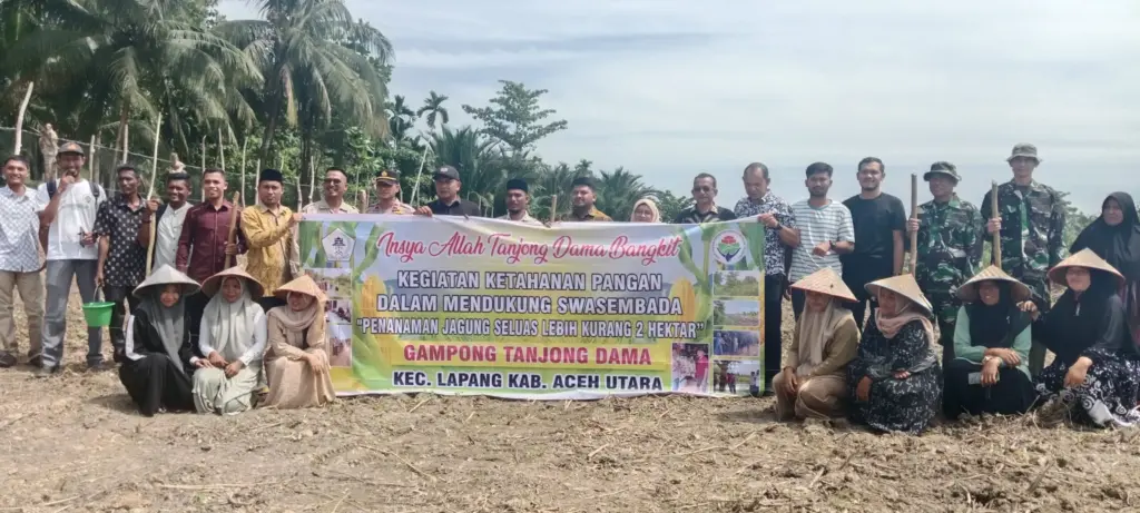 Aceh Utara | Dalam upaya mewujudkan swasembada pangan di tingkat desa, Pemerintah Gampong Tanjong Dama, Kecamatan Lapang, Kabupaten Aceh Utara, meluncurkan program strategis berupa penanaman jagung di atas lahan seluas dua hektare. Program ini menjadi tonggak penting dalam memperkuat ketahanan pangan desa secara mandiri dan berkelanjutan.