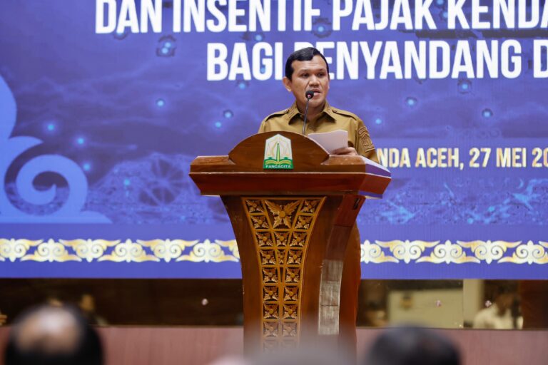 BANDA ACEH | Wakil Gubernur Aceh, Fadhlullah, bersama Kapolda Aceh Achmad Kartiko dan Wali Kota Banda Aceh Illiza Saaduddin Djamal meluncurkan inovasi layanan pada UPTD Samsat Aceh dan pemberian insentif pajak kendaraan bermotor (PKB) bagi penyandang disabilitas, di Anjong Mon Mata Komplek Meuligoe Gubernur Aceh, Selasa, (27/5/2025).