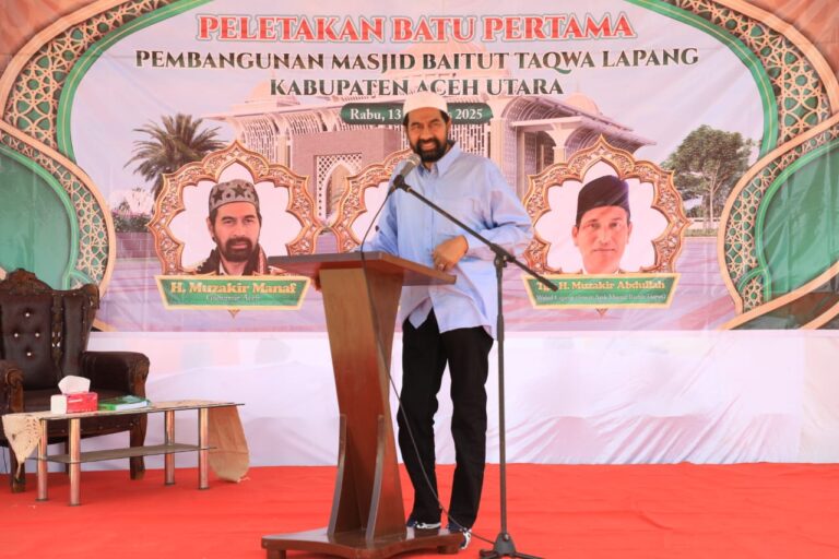 Acèh Utara | Gubernur Aceh Muzakir Manaf atau Mualem meletakkan batu pertama pembangunan Masjid Baitut Taqwa di Gampong Matang Tunong, Kecamatan Lapang, Kabupaten Aceh Utara, Rabu (13/8/2025).