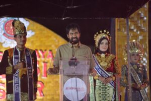 Gubernur Aceh, Muzakir Manaf membuka sekaligus menyerahkan cenderamata serta memukul rapai pada acara Pentas Budaya Tradisi Pesisir di Monumen Samudra Pasai, Aceh Utara, 22/08/2025.