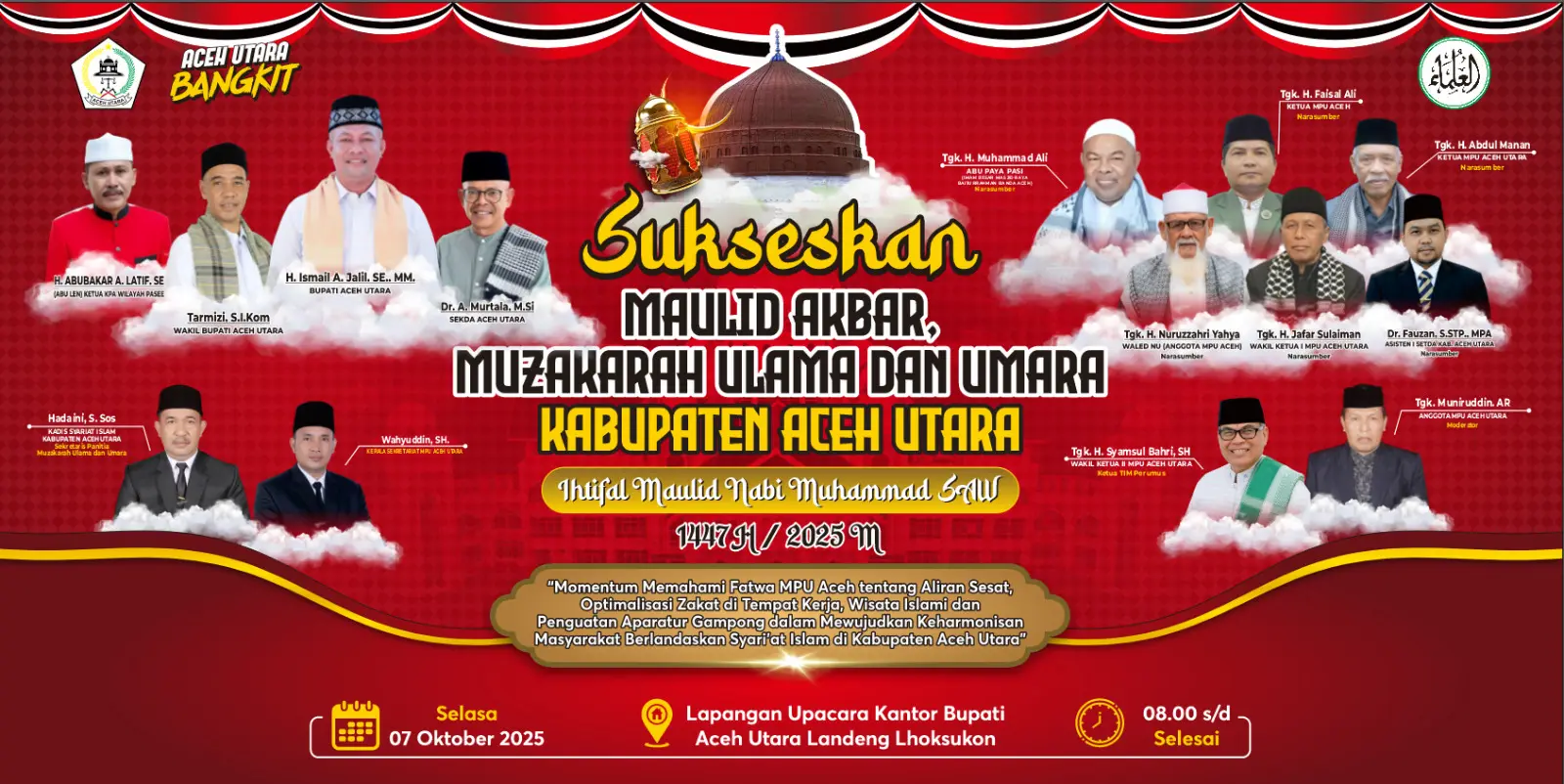 Acèh Utara | Pemkab Aceh Utara akan menggelar maulid akbar untuk memperingati Hari Lahir Nabi Besar Muhammad SAW tahun 1447 H. Kegiatan itu direncanakan berlangsung pada Selasa, 7 Oktober 2025, di lapangan Landing Kecamatan Lhoksukon, dan dihadiri lebih dari 20 ribu warga.