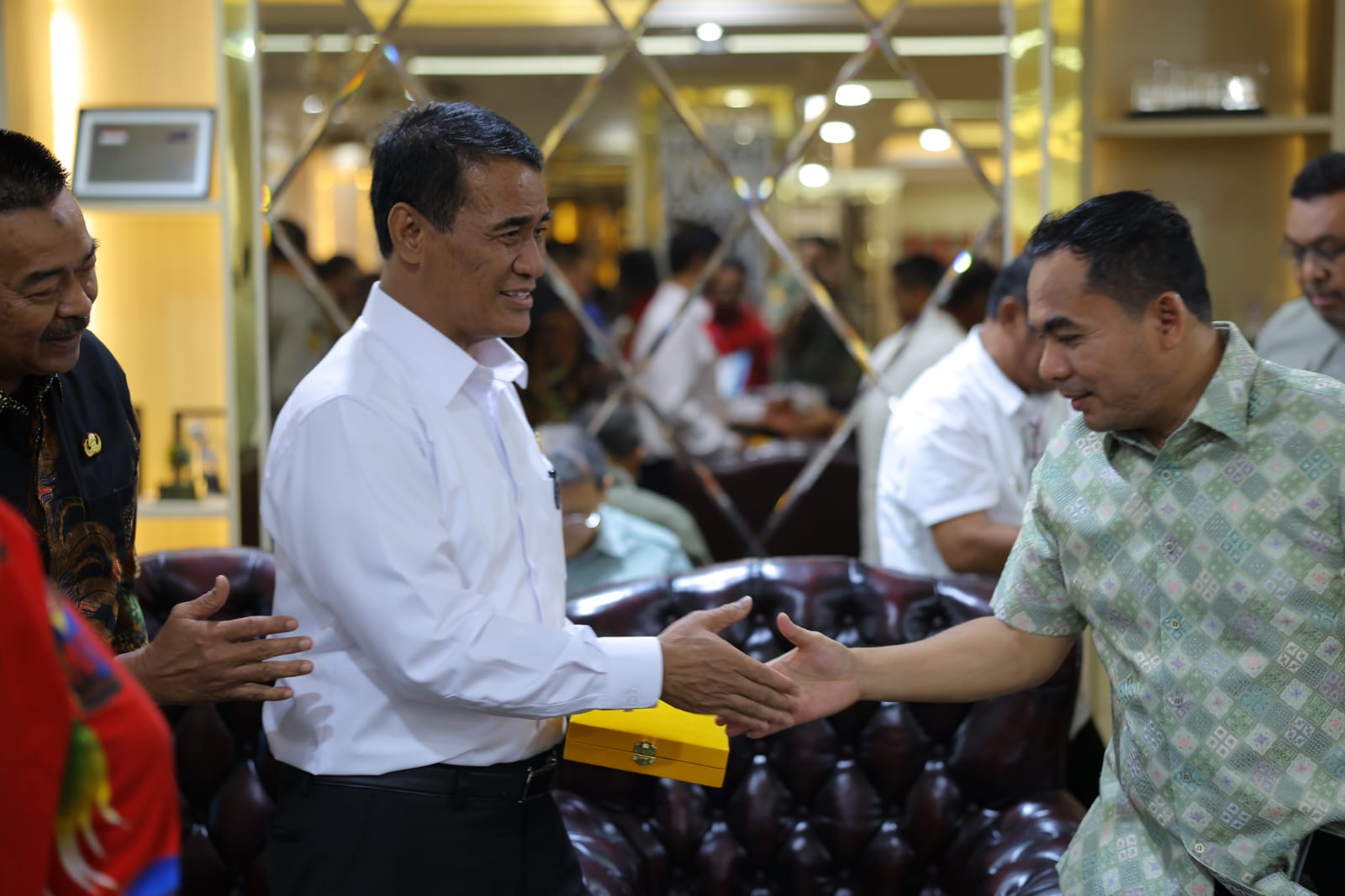 Jakarta – Wali Kota Lhokseumawe, Dr. Sayuti Abubakar, S.H., M.H., didampingi oleh Kepala Dinas Kelautan, Perikanan, Pertanian dan Pangan (DKPPP) Kota Lhokseumawe, Cut Elya Safitri, S.K.H., M.S.M., serta Kepala Bidang Pertanian dan Perkebunan Ira Handayani, S.TP., M.P., melakukan pertemuan dengan Menteri Pertanian Republik Indonesia, Andi Amran Sulaiman, di Ruang Kerja Menteri Pertanian, Jakarta, Kamis (9/10/2025). Pertemuan ini juga diikuti oleh sejumlah Bupati dan Wali kota lainnya dari berbagai daerah di Indonesia. kamis (9 Oktober 2025)