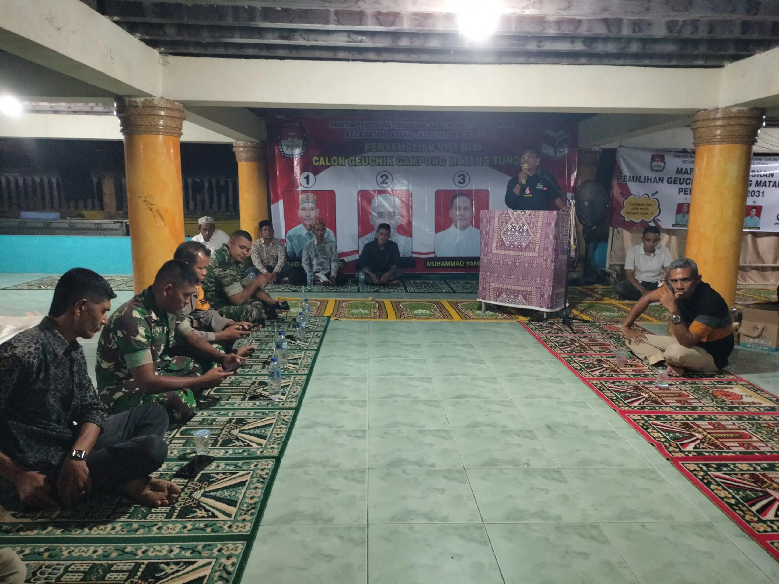 Acara Penyampaian Visi Misi yang diikuti oleh empat calon Geuchik periode 2026-2031 resmi dibuka oleh Geuchik Gampong Matang Tunong, Muzakkir, bertempat di lingkungan Meunasah Gampong.