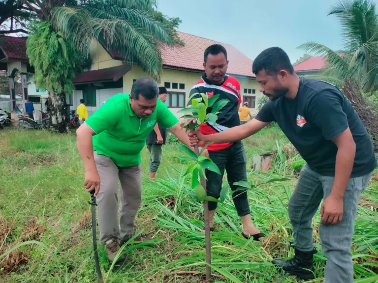 Kamaruddin Ketua Satuan Pelaksana (Satpel) BRA bersama para ASN yang baru ditugaskan melaksanakan kegiatan gotong royong di kantor Sekretariat BRA Aceh Utara pada Jumat, 14 November 2025.