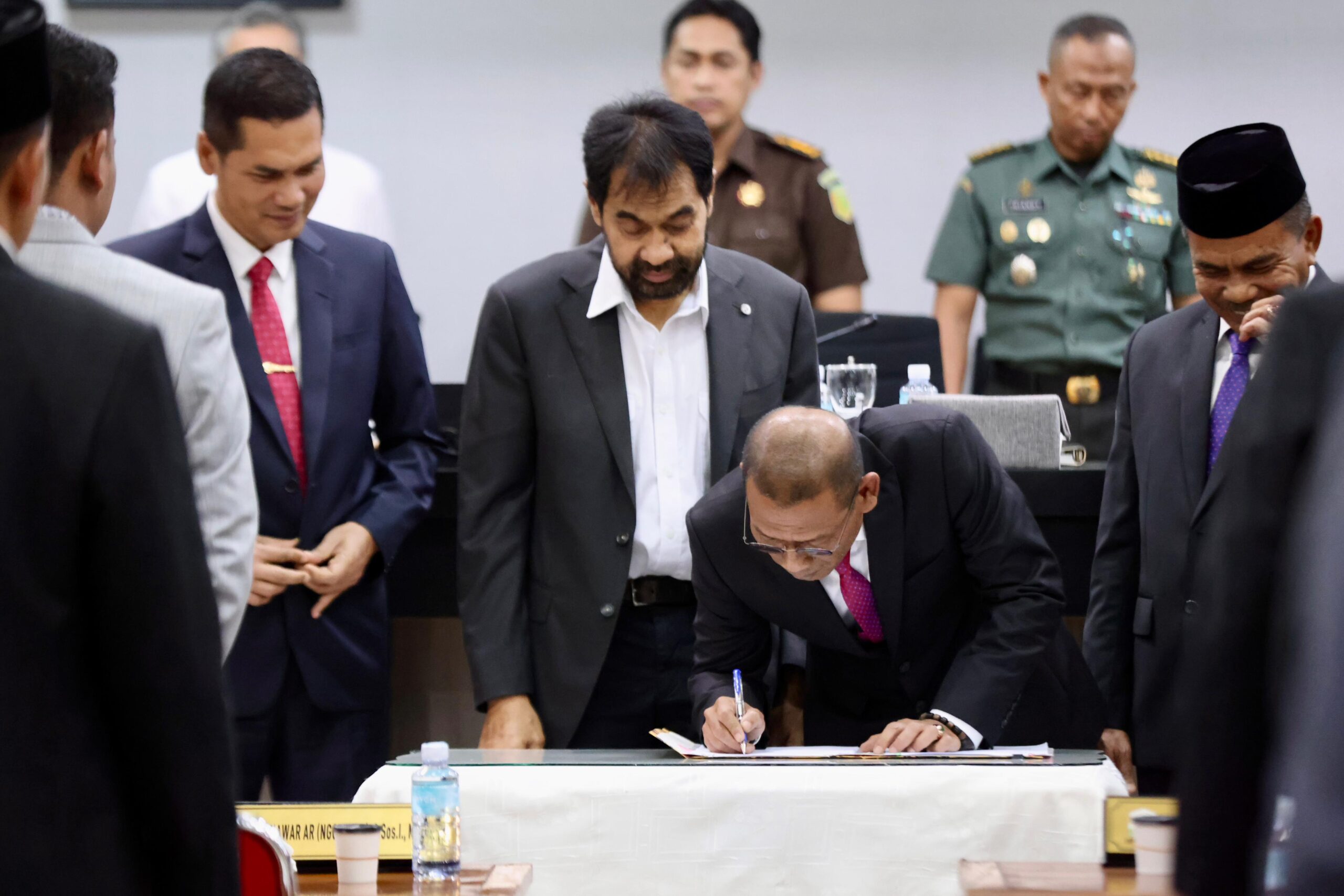 Banda Aceh – Pemerintah Aceh dan Dewan Perwakilan Rakyat Aceh (DPRA) menandatangani Rancangan Kebijakan Umum Anggaran dan Prioritas Plafon Anggaran Sementara (KUA-PPAS) Tahun 2026 dalam rapat paripurna di Gedung DPRA, Kamis siang (14/11). Penandatanganan dilakukan langsung oleh Gubernur Aceh, H. Muzakir Manaf, bersama para pimpinan DPRA.