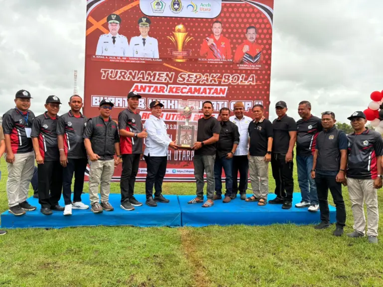 Aceh Utara | Bupati Aceh Utara Ismail A Jalil SE., MM., bersama Wakilnya Tarmizi alias Panyang secara resmi membuka turnamen sepak bola Piala Bupati-Wakil Bupati Aceh Utara Cup II di lapangan sepak bola Kecamatan Syamtalira Aron, Rabu (19/11/2025).