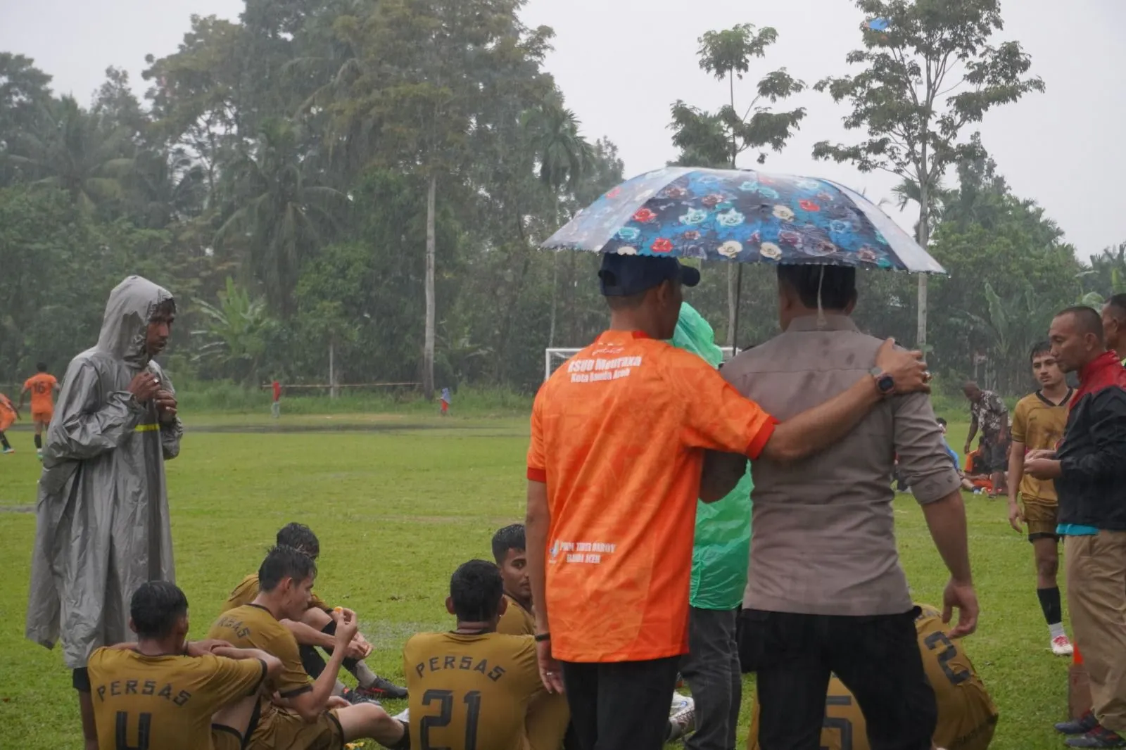 “Panitia tentu memahami besarnya antusiasme masyarakat dan tim yang akan bertanding. Namun kondisi lapangan yang tergenang akibat hujan deras sangat berisiko. Kami tidak ingin memaksakan pertandingan dalam kondisi yang dapat membahayakan pemain,” ujar Zulkifli.