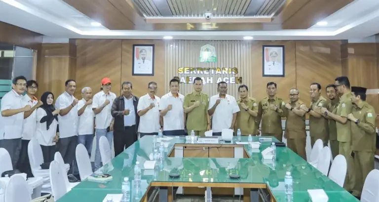 Banda Aceh — Pengurus Komite Olahraga Nasional Indonesia (KONI) Aceh menggelar pertemuan dengan Sekretaris Daerah (Sekda) Aceh, M Nasir, membahas program dan kebutuhan anggaran KONI Aceh tahun 2026. Pertemuan berlangsung di Kantor Gubernur Aceh, Selasa (3/2/2026).