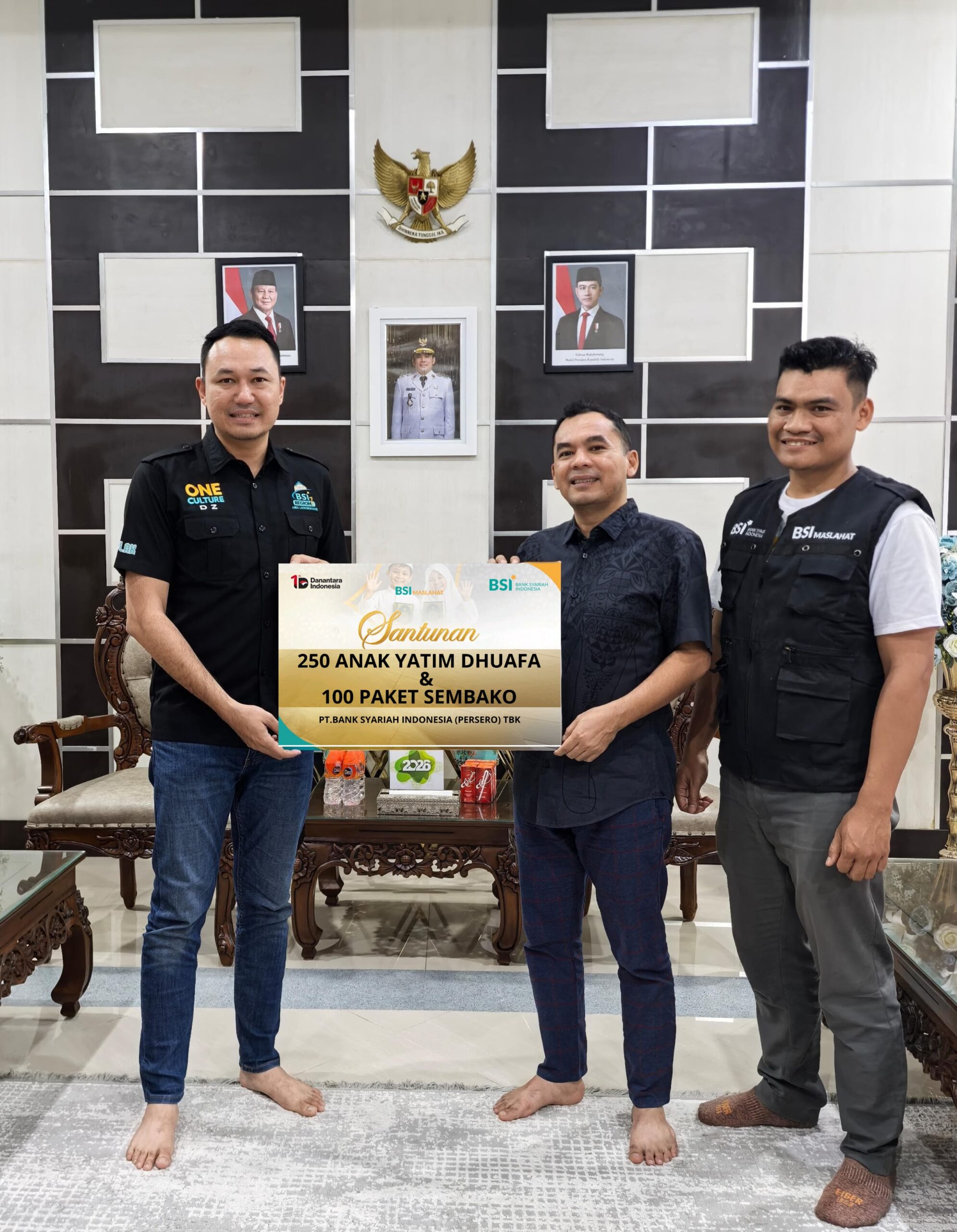 LHOKSUMAWE – Wali Kota Lhokseumawe, Dr. Sayuti Abubakar, S.H., M.H., menerima secara simbolis bantuan santunan bagi 250 anak yatim dhuafa serta 100 paket sembako dari Bank Syariah Indonesia (BSI) Area Lhokseumawe.