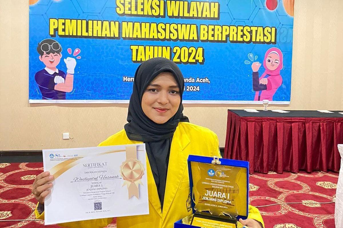 Banda Aceh | Mahasiswi Politeknik Negeri Lhokseumawe (PNL) kembali menoreh prestasi, kali ini Wasliyatul Hasanah yang merupakan mahasiswi Jurusan Teknik Kimia Prodi Migas berhasil meraih juara pertama jenjang Diploma dari ajang Seleksi Wilayah Mahasiswa Berprestasi Tahun 2024 yang diadakan 2-4 Mei 2024 di Hermes Palace Hotel, Banda Aceh.